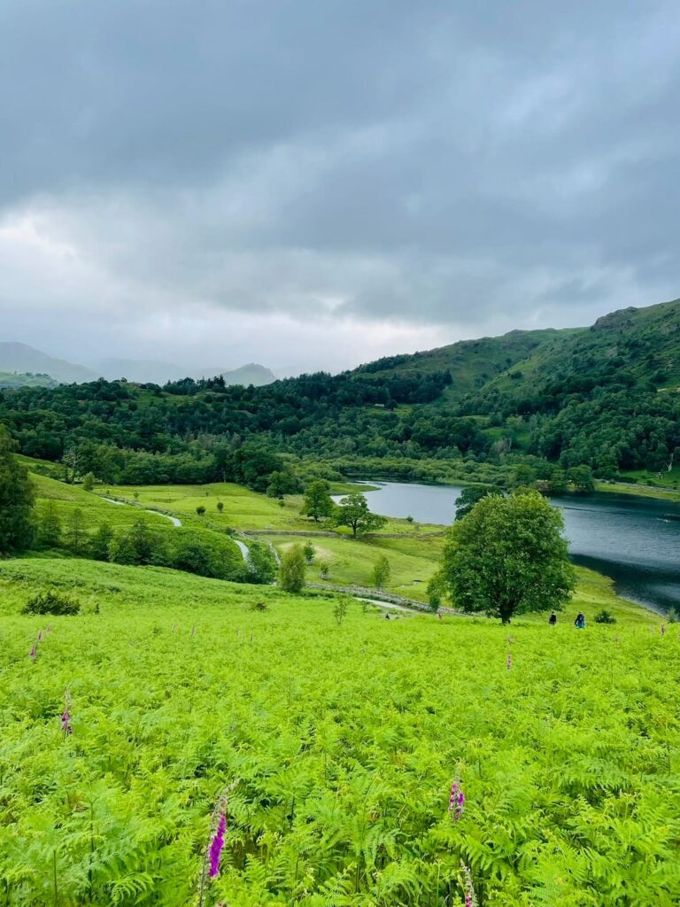 這條路線我只有走一小時左右,後來因為下雨而折返,路線很平坦,就是環湖步道,另一邊的景色會是民宅、草地或是羊咩咩,非常溫馨,如果繼續走下去可以到Grasmere(有驚為天人的薑餅),沿路偶爾會遇到參天大樹,也都有椅子可以坐著休息,屬於新手友善路線!